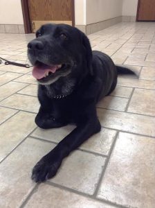 Ruby is a 7-year-old black Labrador Retriever that has been trained from an early age to assist her owner that is visually impaired. She was trained to be a guide dog in a program based out of Michigan called Leader Dogs for the Blind. This program not only trains guide dogs but also matches clients with a dog that best fits their lifestyle, travel pace, physical size, stamina, and other considerations. Ruby passed guide dog training with flying colors and has been helping her owner on a day to day basis ever since.